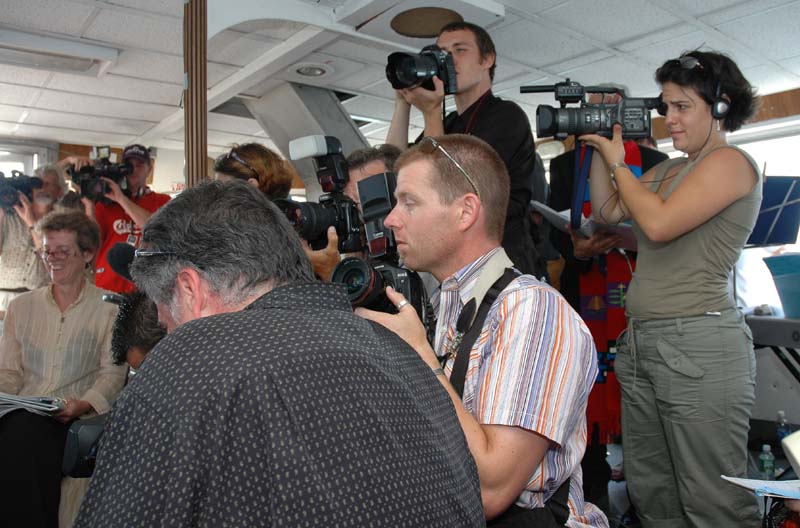 Master of Ceremony Kathrin und die sehr freundlichen Journalistinnen und Journalisten aus Canada und den United States
