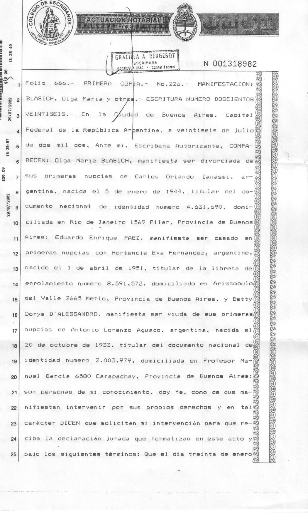 Buenos Aires mit der notariellen Aussage von 4 Zeugen über die Echtheit