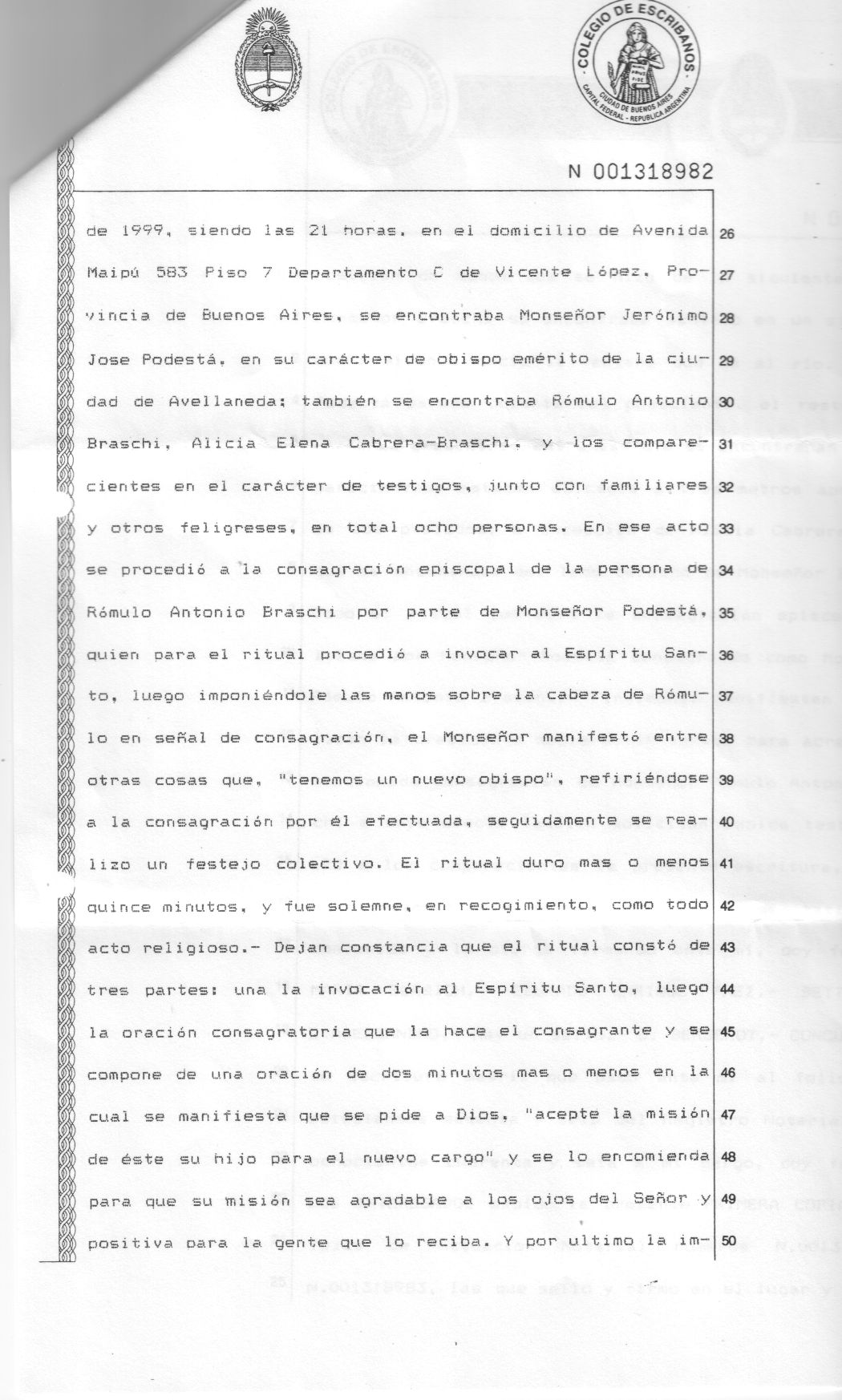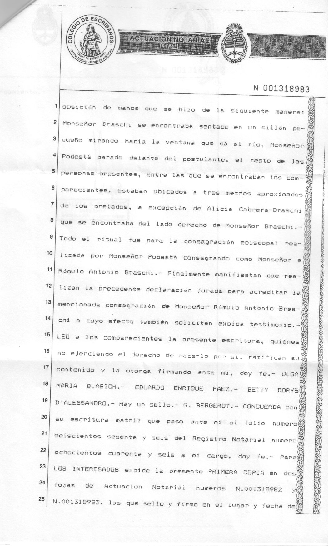 Einzelheiten seiner Weihe durch den argentinischen Bischof Geronimo
