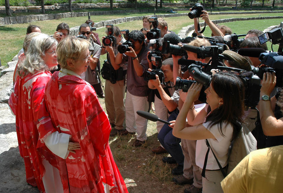 links Bischöfin Dr. Patricia Fresen aus Südafrika rechts Zeremonienmeisterin Elfriede Harth aus Paris